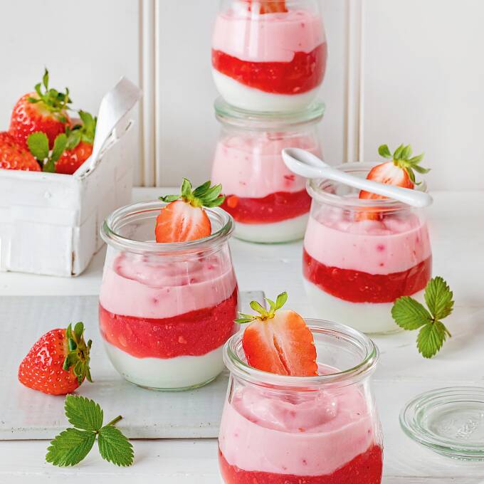 Tipp: Mit gekühlten, halbierten Erdbeeren im Glas servieren.